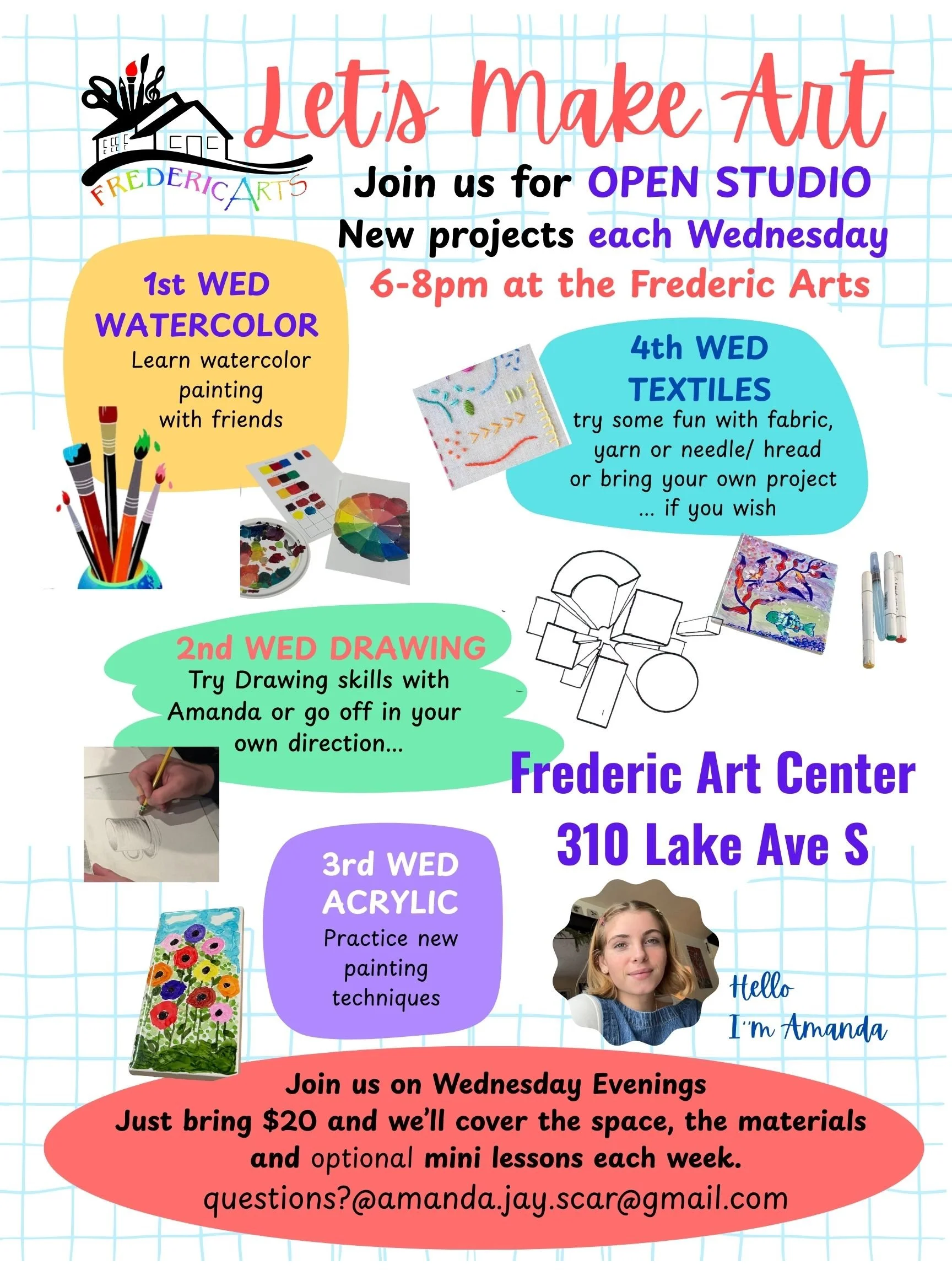 NEW! WEDNESDAY OPEN STUDIOS 6-8pm, Let’s Make Art with Amanda!