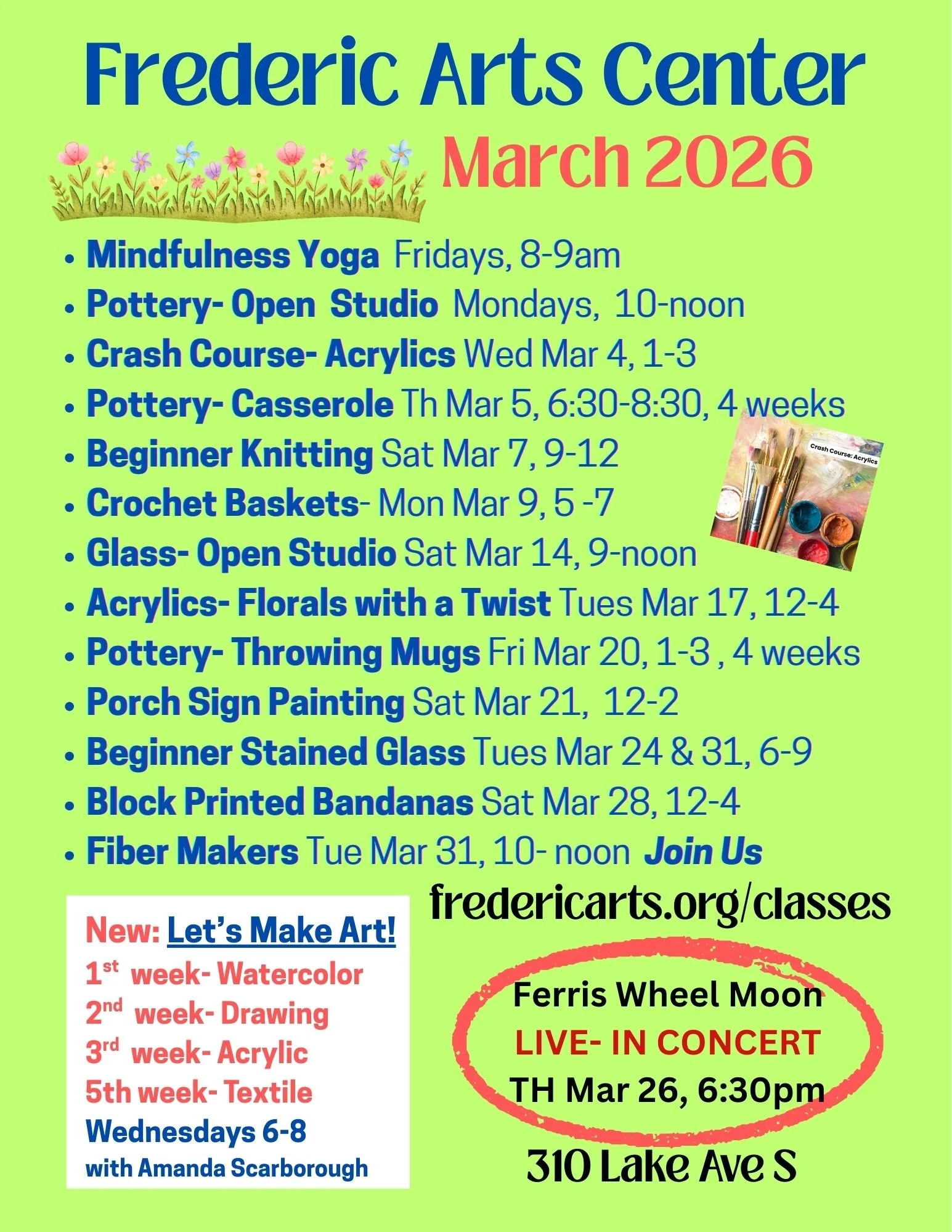 New To Frederic Arts- come Make art with us!